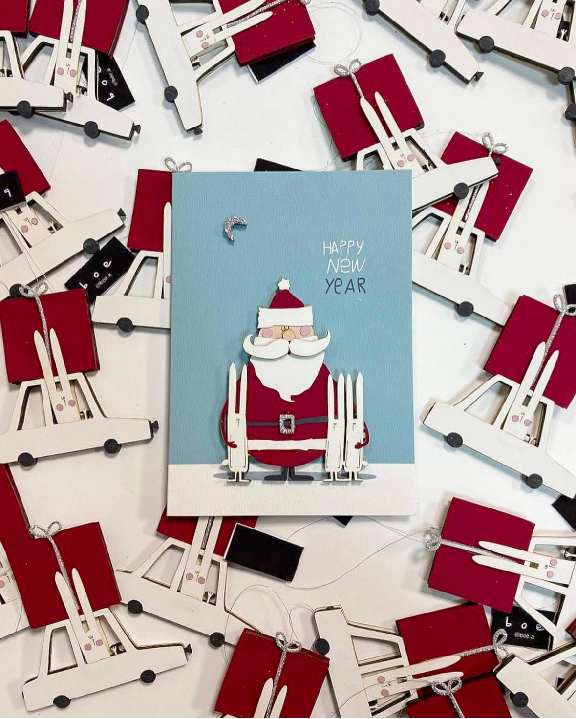 Открытка дизайнерская новогодняя ручной работы с деревянными элементами.