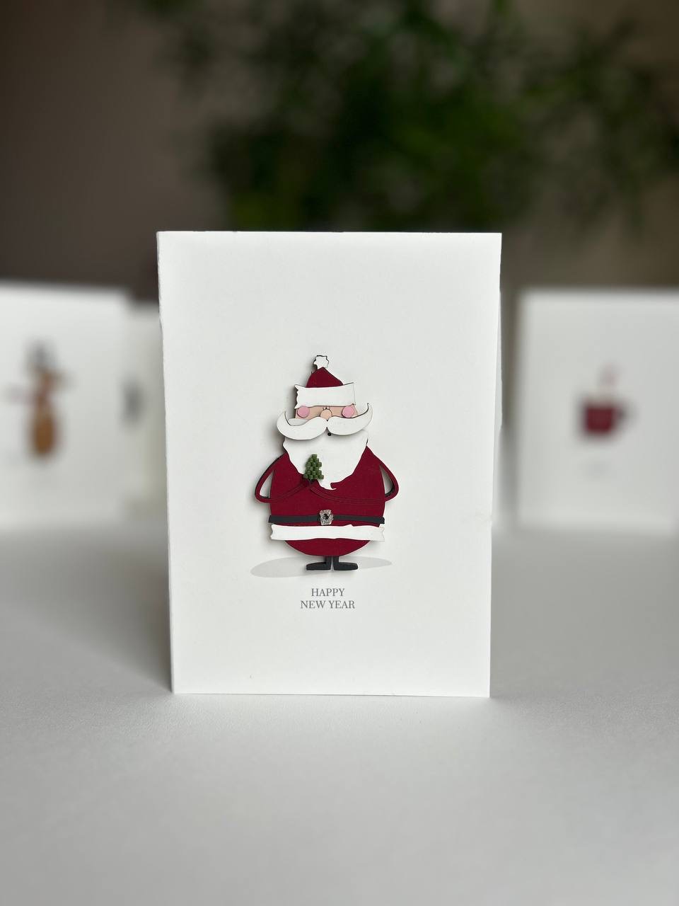 Открытка дизайнерская новогодняя ручной работы с деревянными элементами.