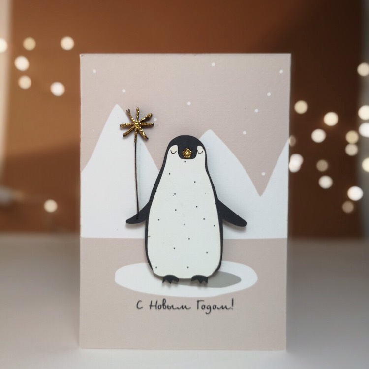 Открытка дизайнерская, ручной работы с деревянными элементами.