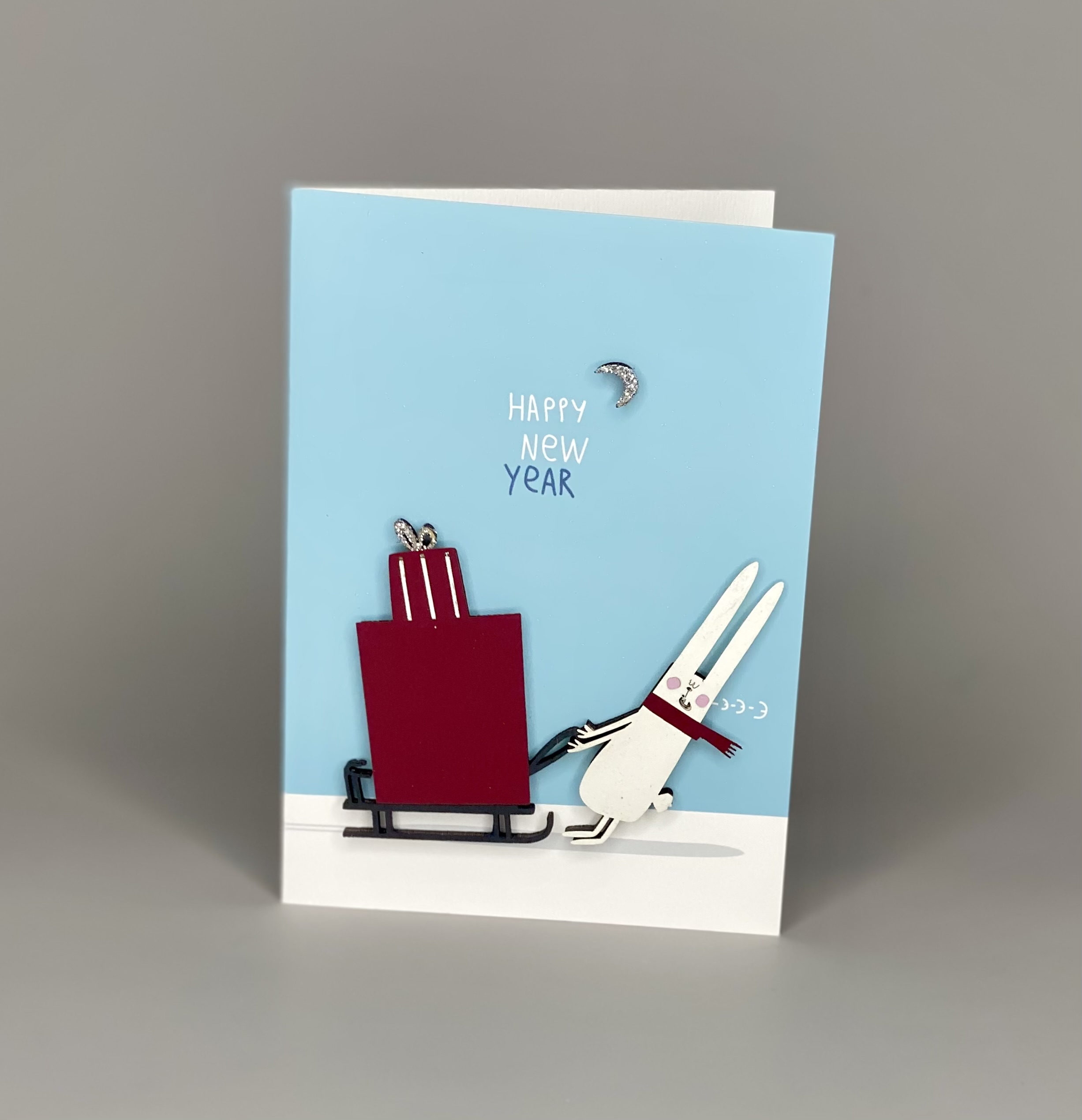 Открытка дизайнерская новогодняя ручной работы с деревянными элементами.