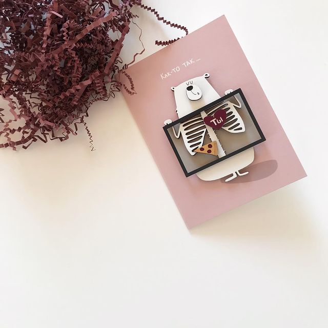 Открытка дизайнерская, ручной работы с деревянными элементами.