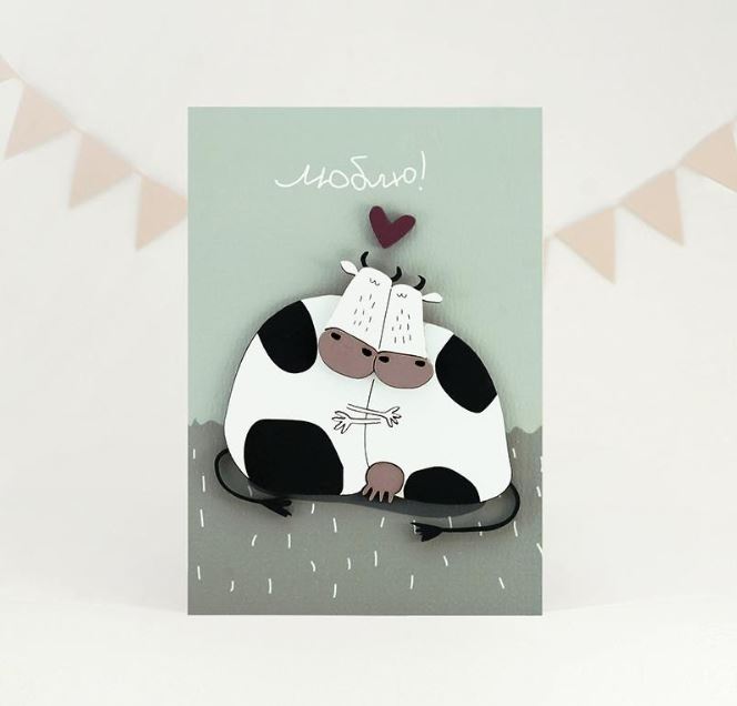 Открытка «Люблю!» (коровки)