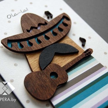 Открытка дизайнерская, ручной работы с деревянными элементами.