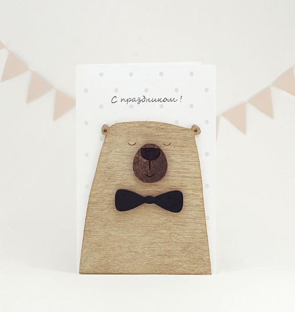 Открытка дизайнерская, ручной работы с деревянными элементами.