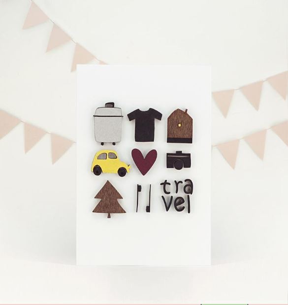 Открытка дизайнерская, ручной работы с деревянными элементами.
