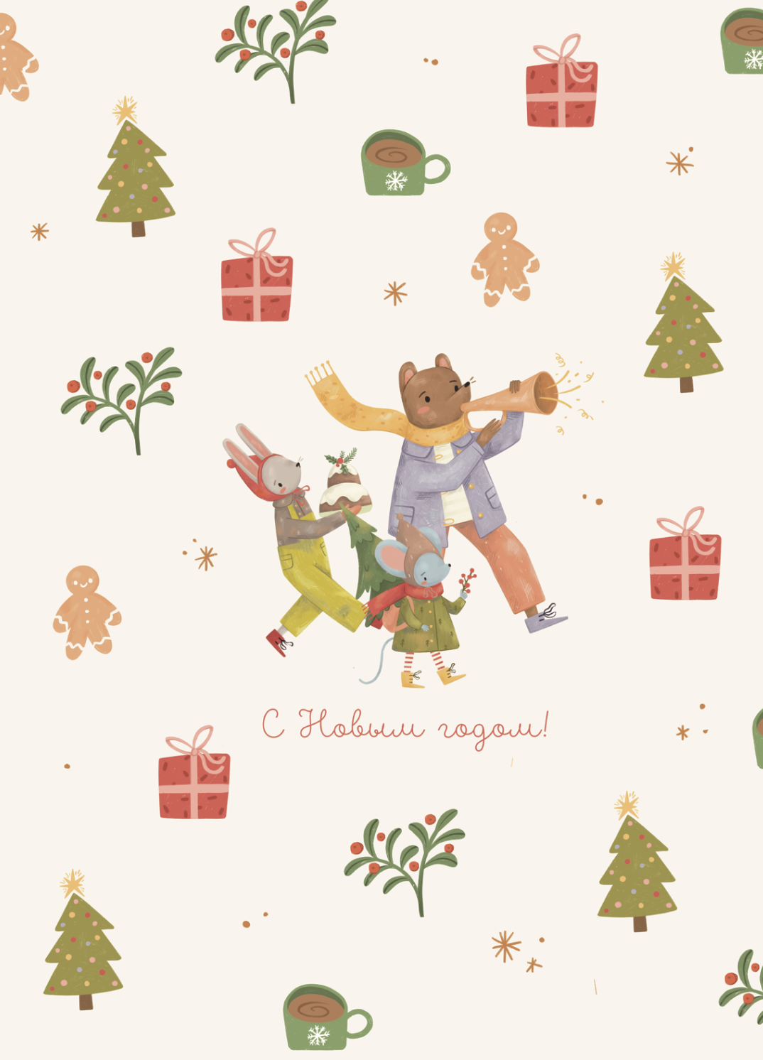 Новогодняя подарочная бумага «С Новым годом!», 50*70 см, 100г/м2, 5 листов