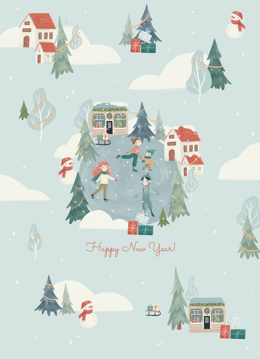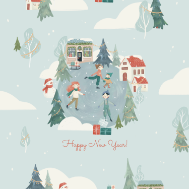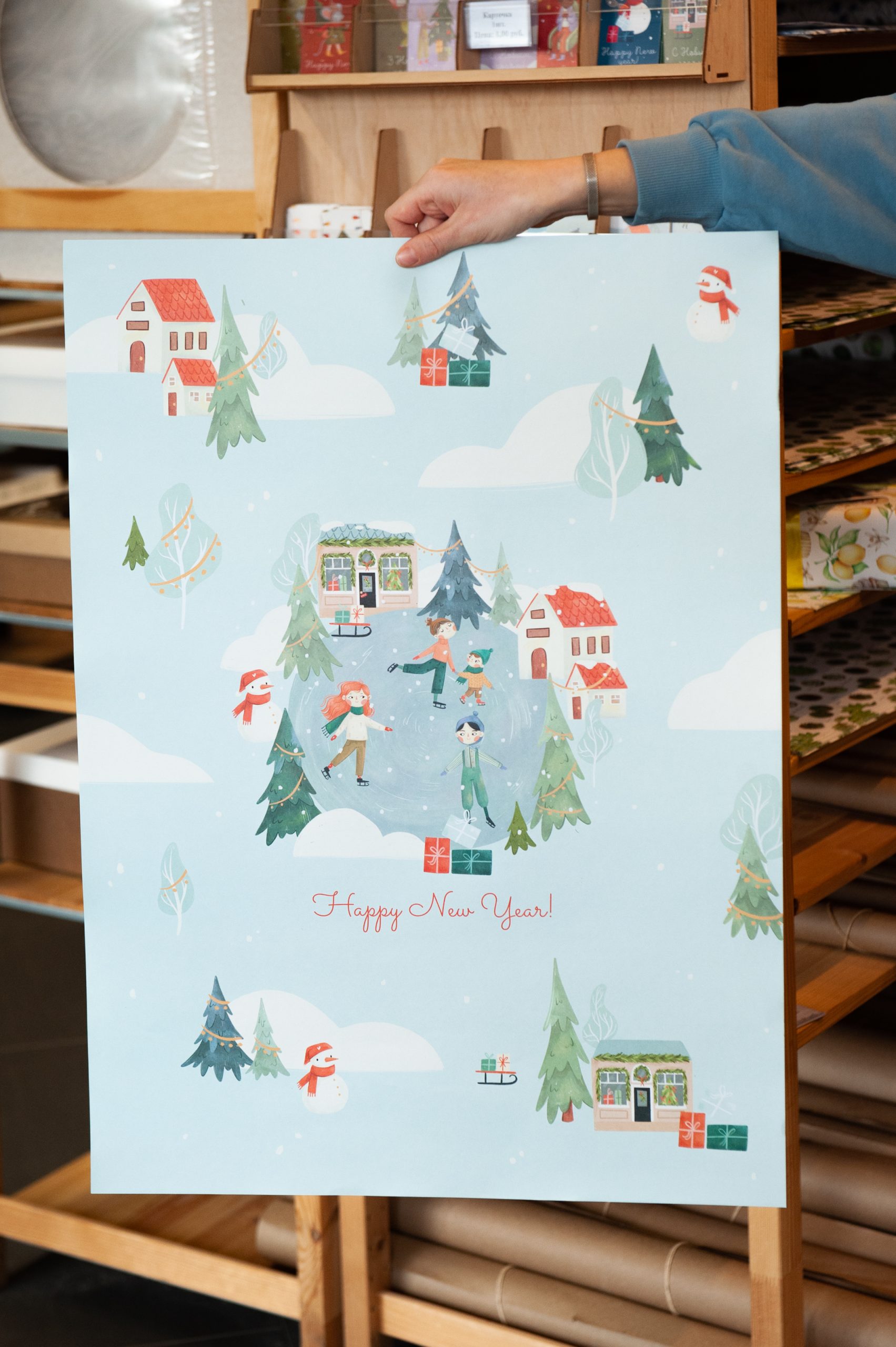Новогодняя подарочная бумага «Каток», 50*70 см, 100г/м2, 5 листов