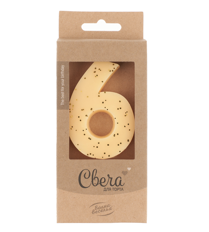 Свеча-цифра «6» кремовая с блестками 4,3*7,5 см, с держателем