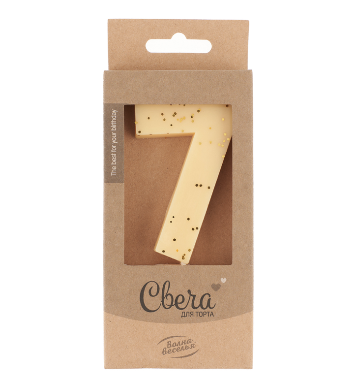 Свеча-цифра «7» кремовая с блестками 4,3*7,5 см, с держателем