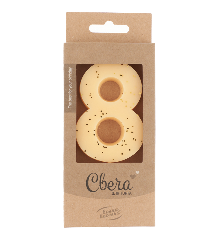 Свеча-цифра «8» кремовая с блестками 4,3*7,5 см, с держателем
