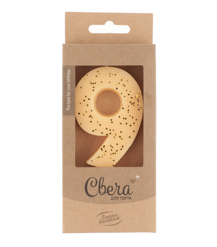Свеча-цифра «9» кремовая с блестками 4,3*7,5 см, с держателем